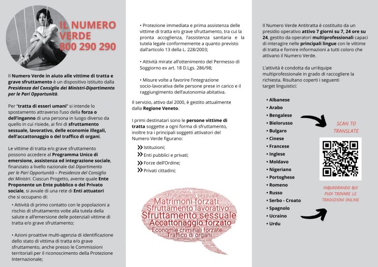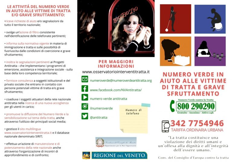 Numero Verde nazionale in aiuto alle vittime di tratta e grave sfruttamento. Gratuito, Anonimo, operativo 24 ore su 24.